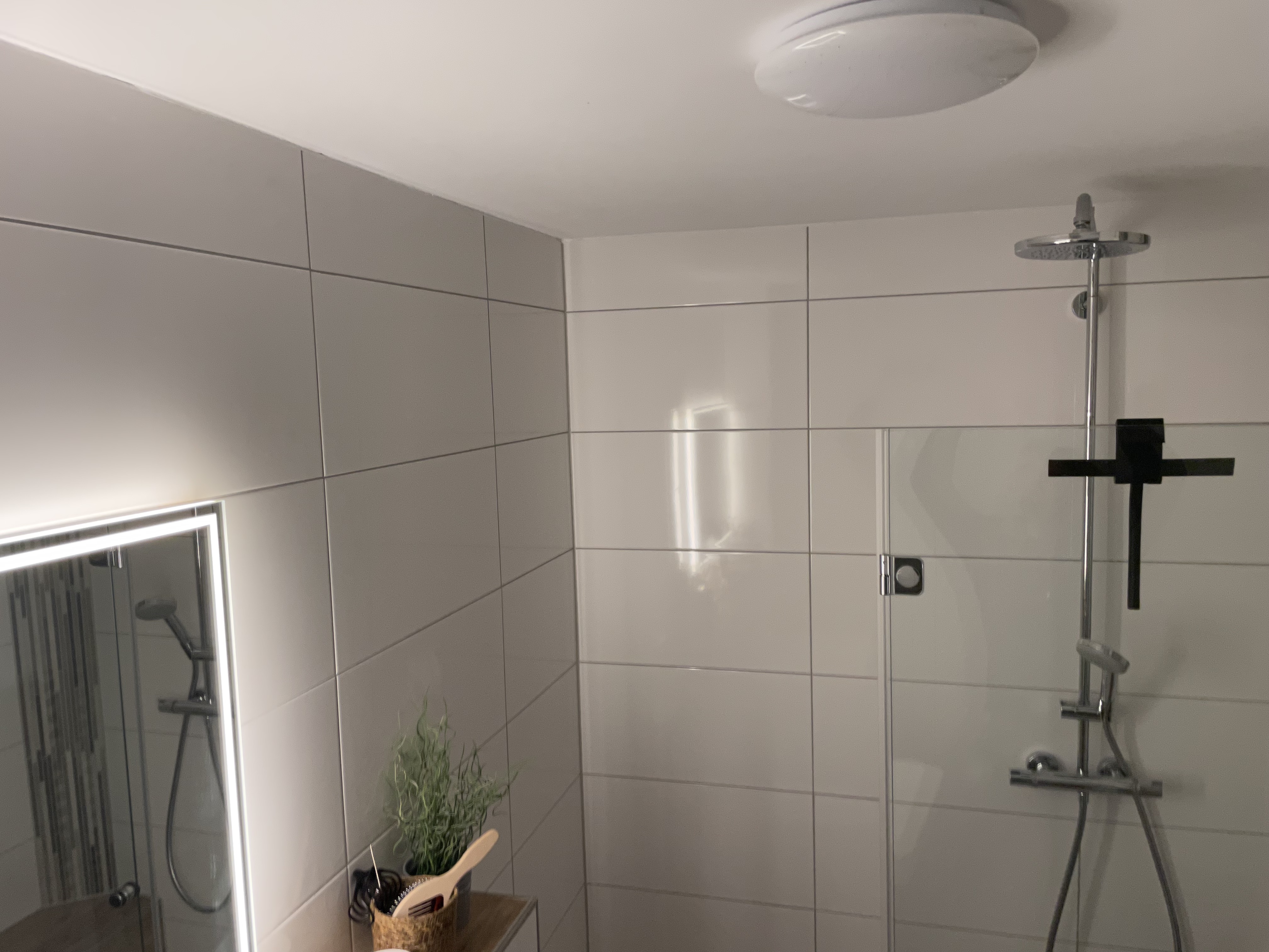 Bei der Sanierung des nur 5,16 m² großen Badezimmers war unsere größteHerausforderung eine große Dusche unterzubringen. Eine Vorgabe des Kunden warein altersgerechtes Badezimmer zu erschaffen, das gleichzeitig eine absoluteWohlfühlatmosphäre ausstrahlt.